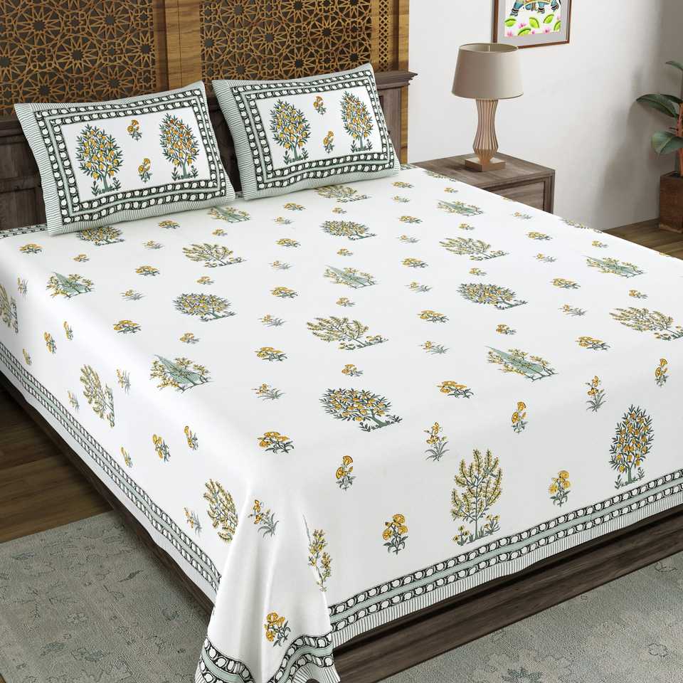 BLOCKS of INDIA Hand Block Printed Super King Size Cotton Bedsheet 270 X 270 Color 11