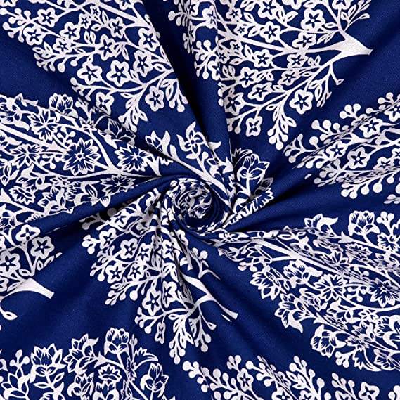 BLOCKS of INDIA Navy Blue Cotton Paisley Window Curtains with Eyelets 153 cm Set of 2 Grommets