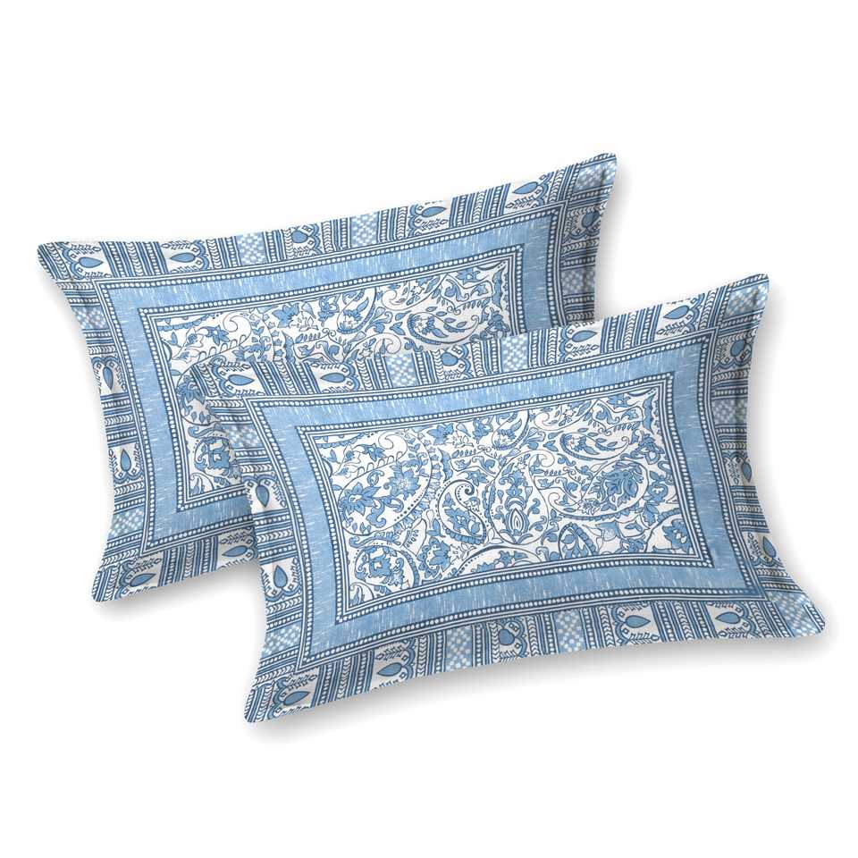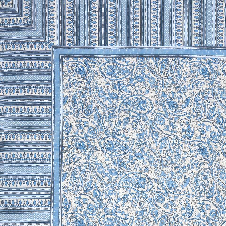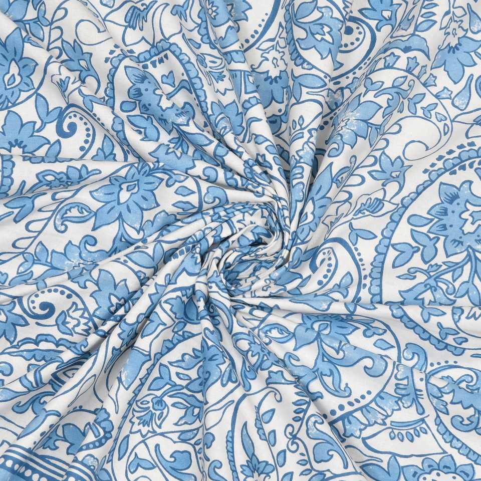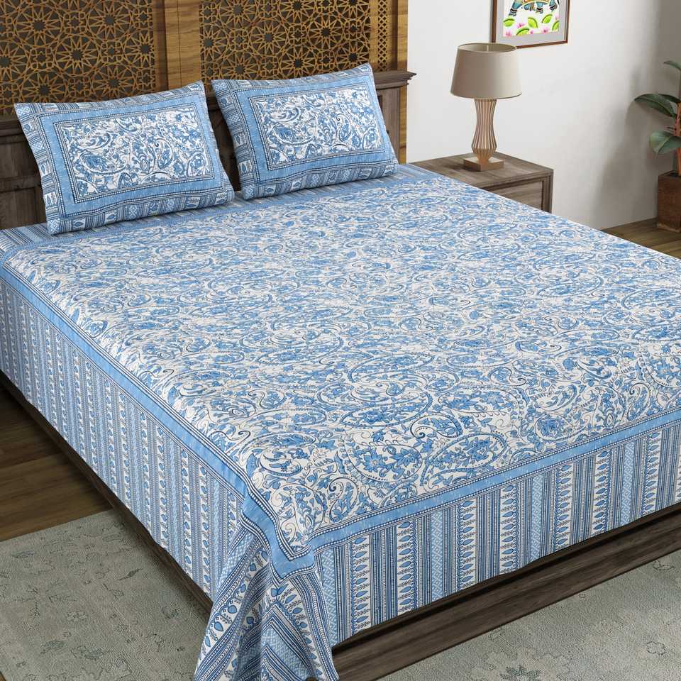 BLOCKS of INDIA Sanganeri Print Cotton Viscose Economy King Size Bedsheet 225 X 270 CM DOB_BED_AURA_JAAL_BLUE Fitted Flat Sheets