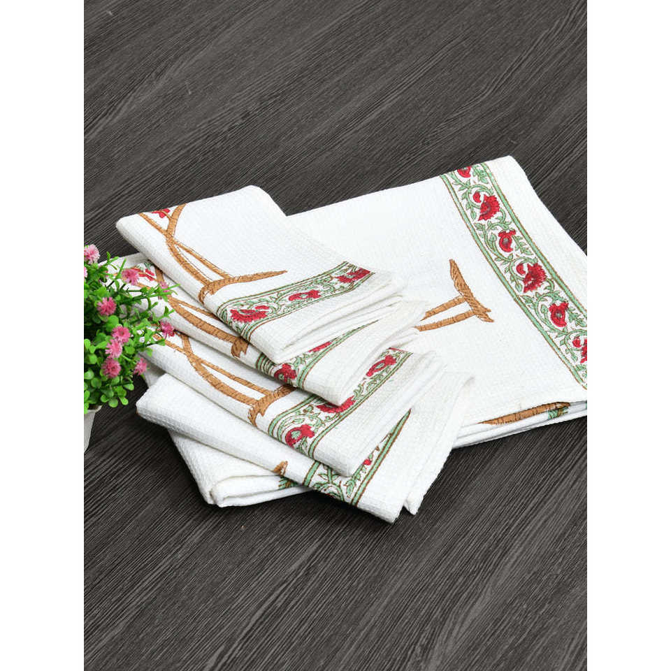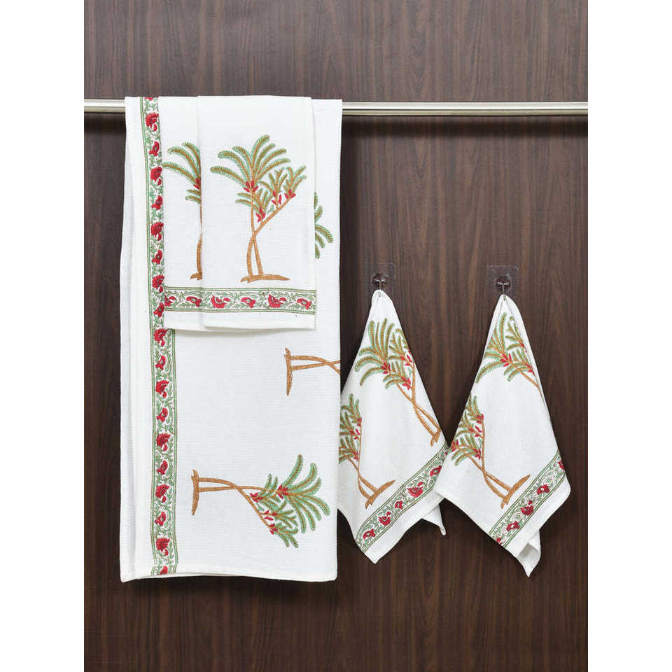 BLOCKS of INDIA Soft Waffle Cotton Bath and Hand Towel Set 1 Bath and 4 Hand Towels Hand Block Printed in 38 Colors