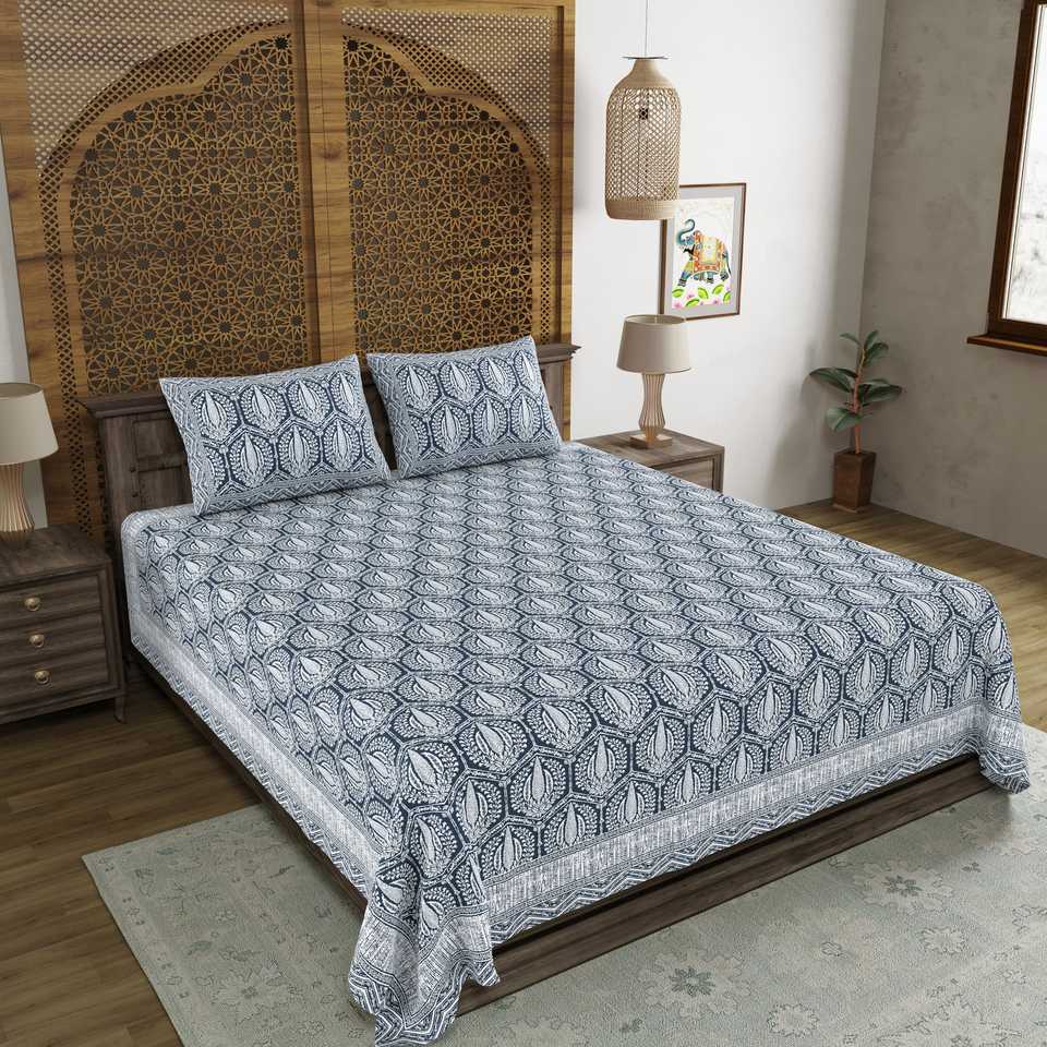 BLOCKS of INDIA Super King Handmade Hand Block Printed 100% Cotton Blue Pine Tree 270 X 270 Fitted & Flat Sheets From Rajasthan