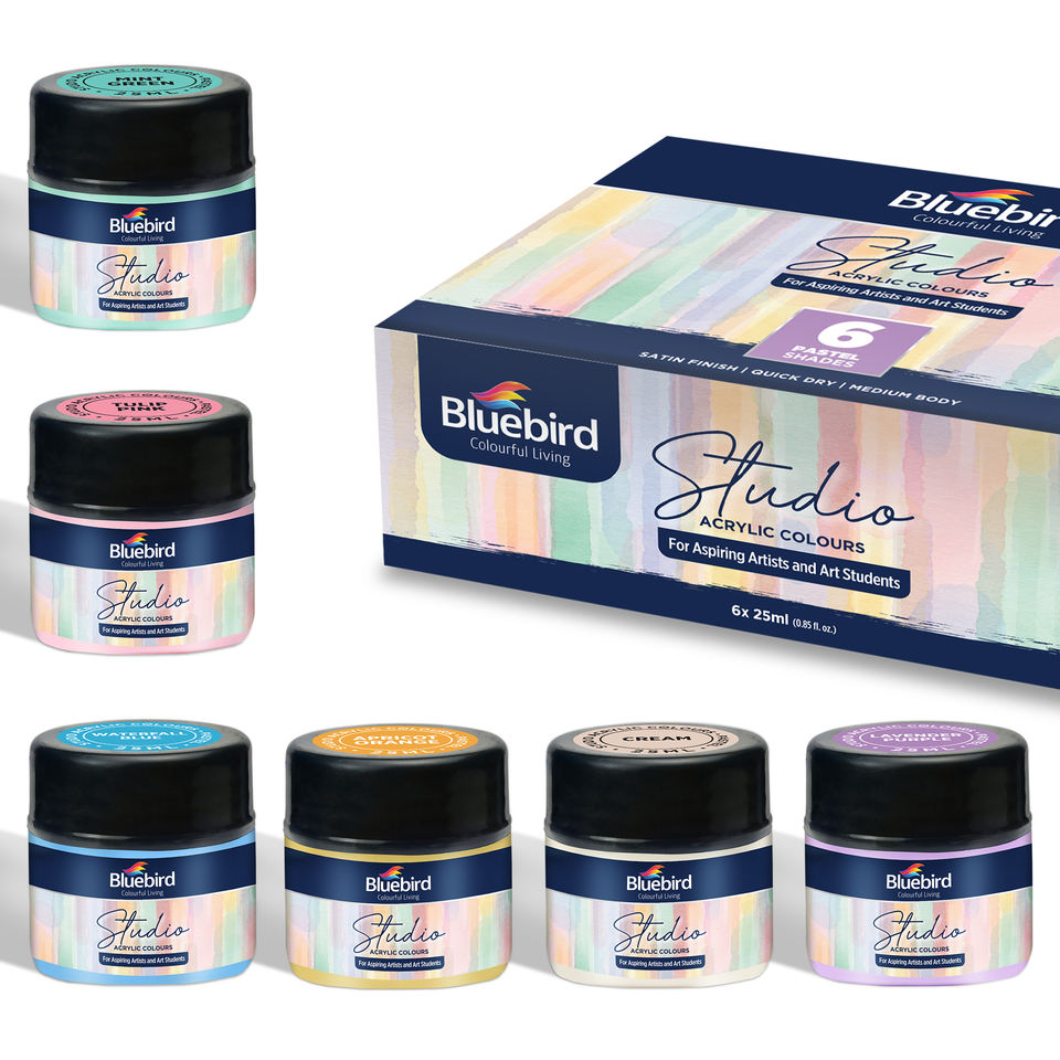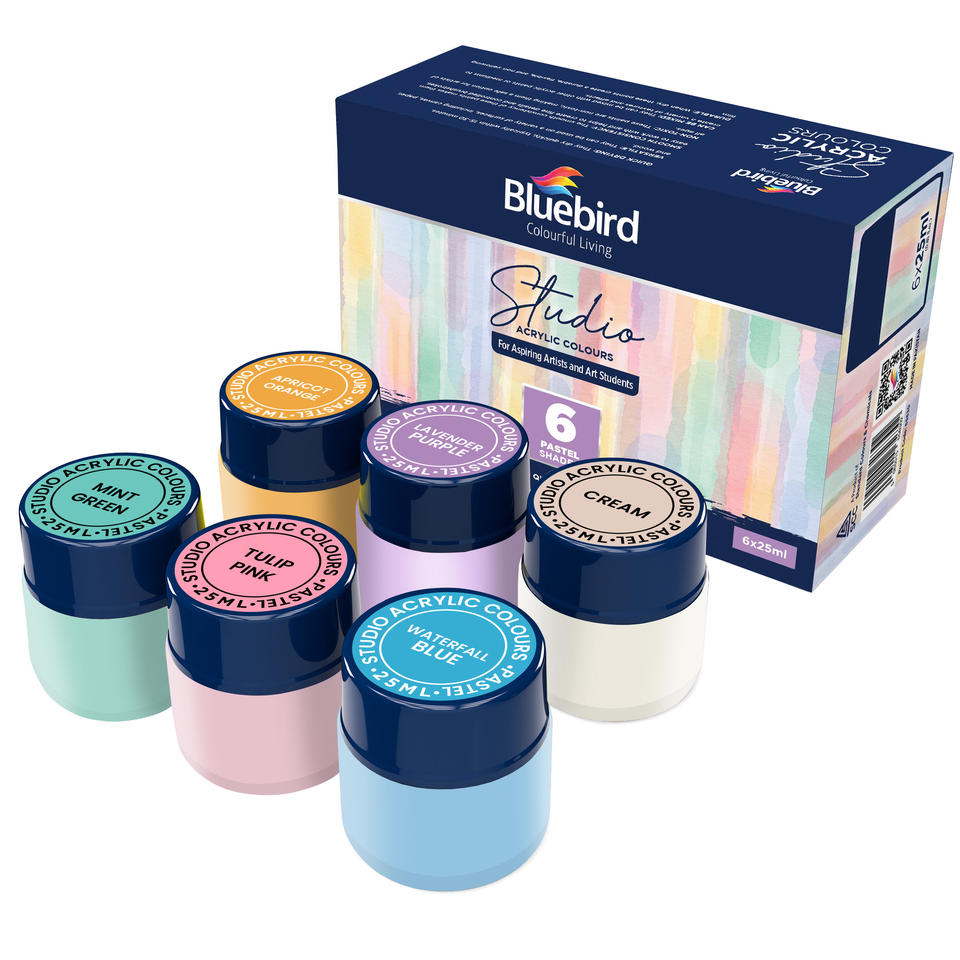 BLUEBIRD 6-Pack 0.85 Fl Oz Acrylic Paints Pastel Colors for Kids Students Beginner Artists-for Glass Paper Painting Mediums