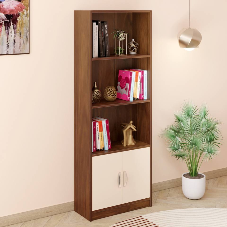BLUEWUD Seonn Wood Bookshelf Cabinet Book Rack Organizer with Shelves 2 Doors Cabinet Floor Standing for Home Library