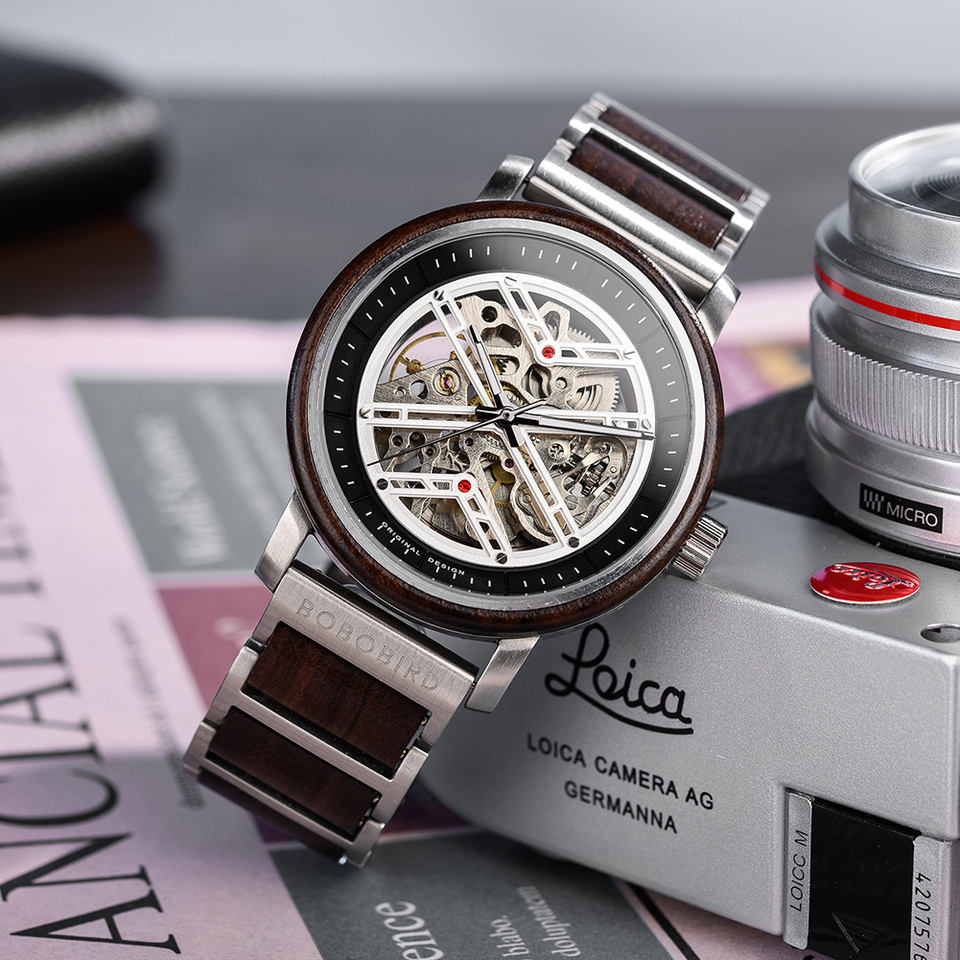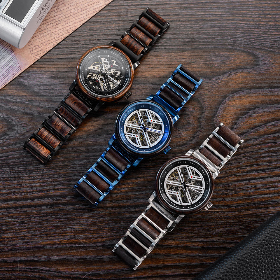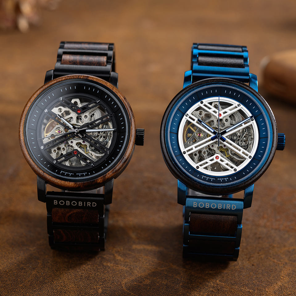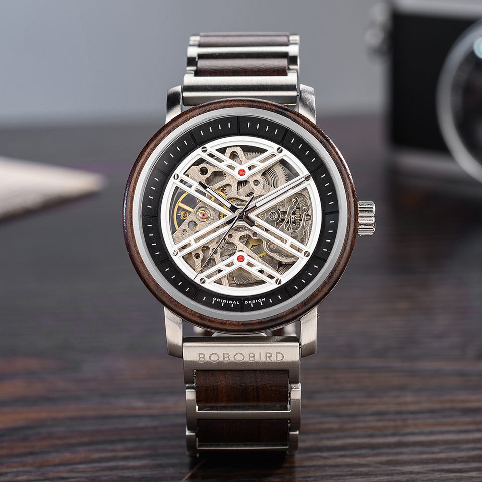 BOBO BIRD Men's Luxury Automatic Custom Wood Watch Popular Mechanical Wood Watch Luminous Genuine Classic Skeleton Design Made