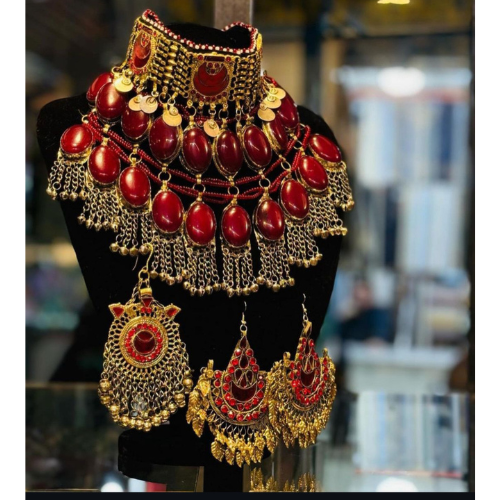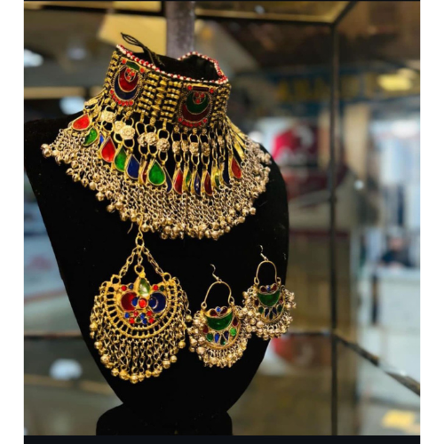 BOHO AFGHANI ETHNIC STUD EARRINGS for WOMEN GOLD COLOUR GYPSY GOLD INDIAN AFGHANI NECKLACE SETS PASHTUN CULTURAL WOMEN JEWELRY