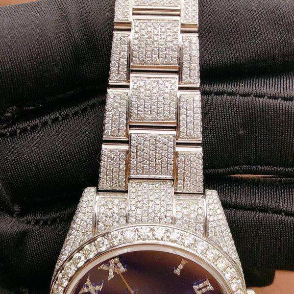 BOJ R.O.L.E.X.029 Roman Number Full Moissanite Luxury Fashion Quartz Analog Steel 41MM 3BAR Water Resistant Hip Hop Watch Men