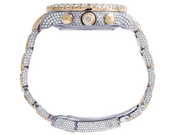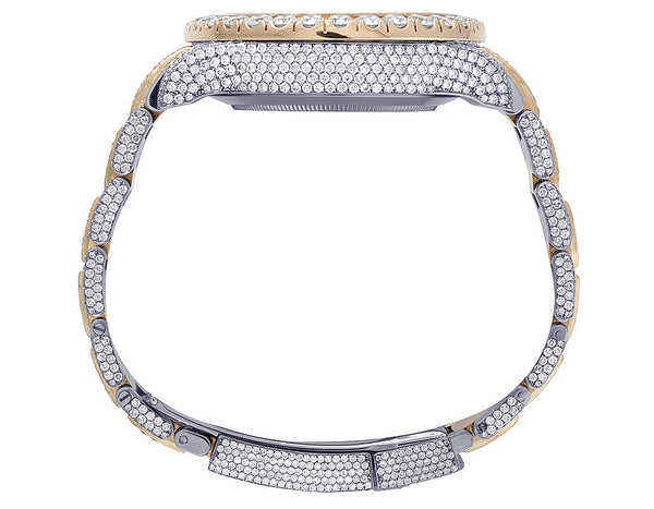 BOJ R.O.L.E.X.045 Rose White Tone Full Moissanite Luxury Fashion Quartz Analog Steel 41MM 3BAR Water Resistant Hip Hop Watch Men