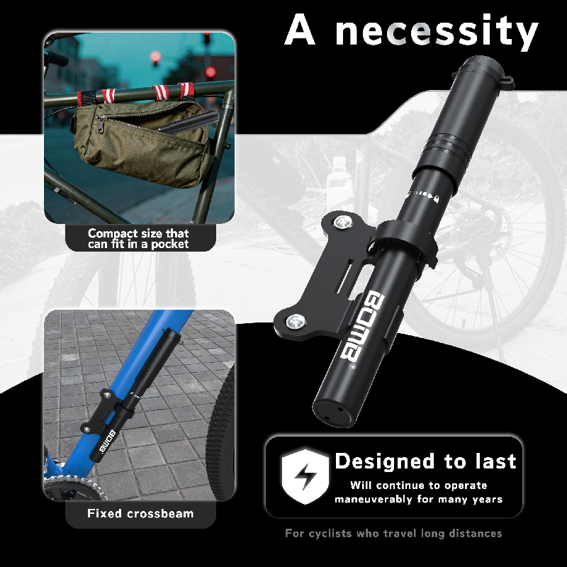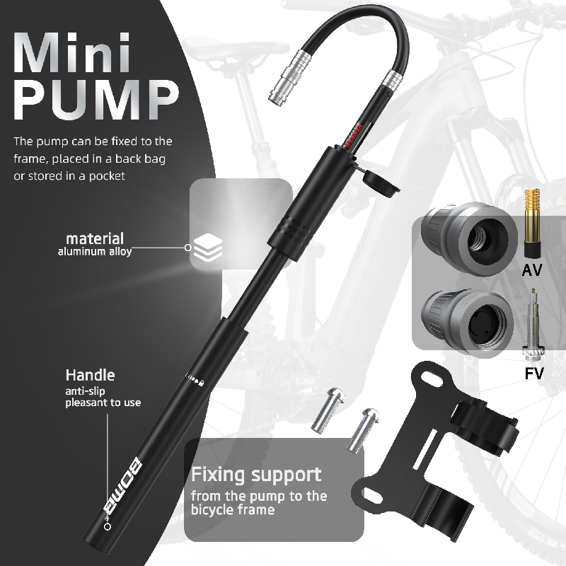 BOMB Portable Mini Bike Pump with Telescopic Hose and Pressure Gauge