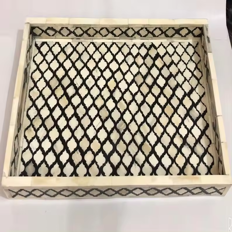 BONE Inlay Tray with Resin Box Serving Tray for Home Hotel Mother of Pearl Box Lid Chocolate tray