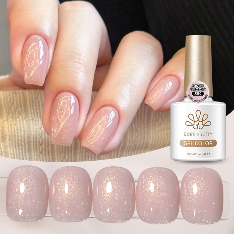 BORN PRETTY Pink Nude Natural Glitter Gel Polish Soak Off UV French Elegant Shimmer Gel Polish for Nail Art Salon DIY Manicure