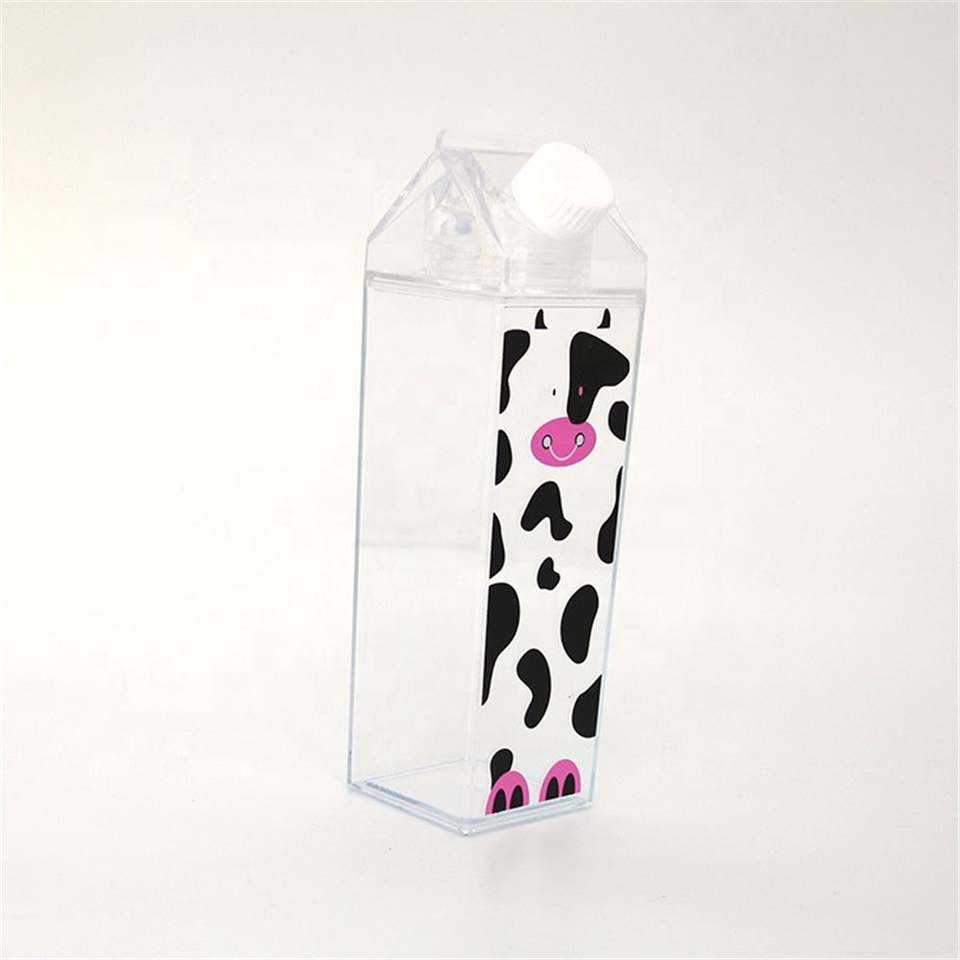 BPA Free 500Ml 700Ml 1000Ml Plastic Clear Pink Transparent Colored Acrylic Milk Box Carton Shaped Water Bottle