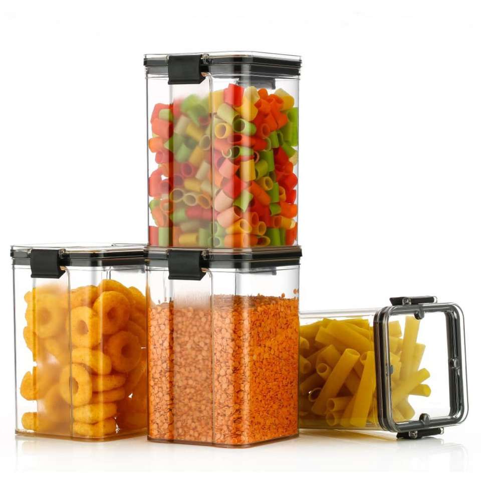 BPA Free Airtight Stackable Food Containers Plastic Organizer Storage Boxes with Lids Clear Plastic Grain Jar for Freshness