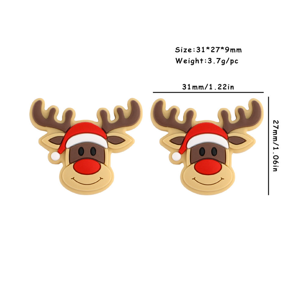 BPA Free Baby Teething Pacifier Necklace Jewelry Sensory Toy Christmas Reindeer Silicone Focal Bead for DIY Pens Jewelry Making