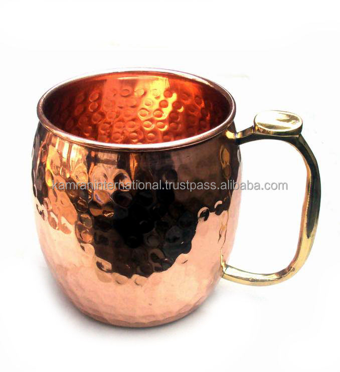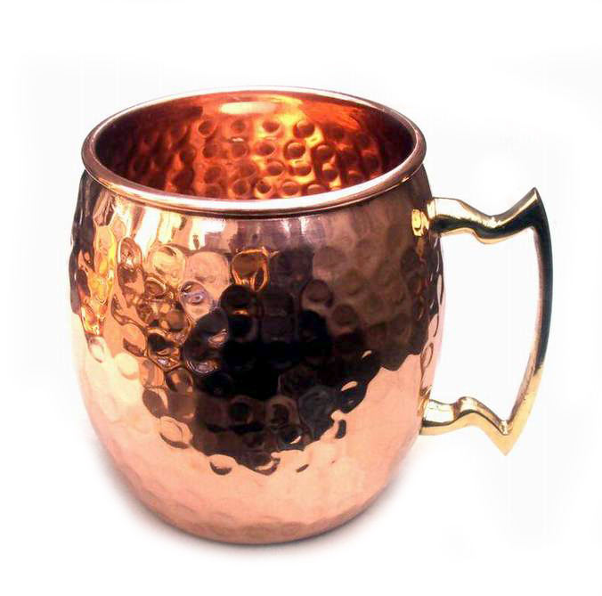 BPA-Free Moscow Mule Copper Metal Mug with Eco-Friendly Hammered Barrel Design Zigzag Brass Handle for Eco-Friendly Drinking