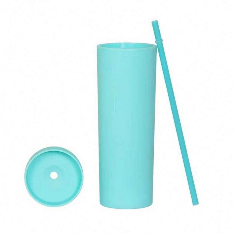 BPA Free Custom Logo 16Oz Slim Matte Reusable Cup Pastel Colored Double Wall Skinny Acrylic Plastic Tumblers With Straw and Lid