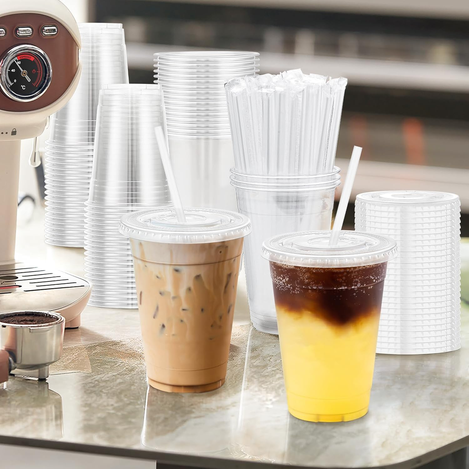 BPA Free Eco-Friendly Disposable Clear Plastic Cups for Wedding Cocktail Iced Coffee Cold Beverages PET/PLA Cold Cups Multi-Size