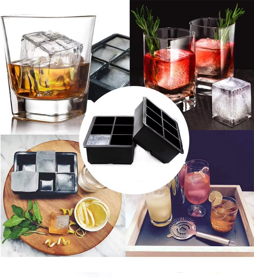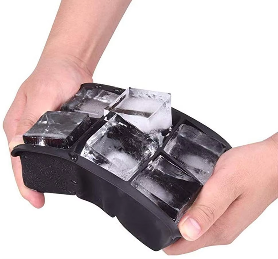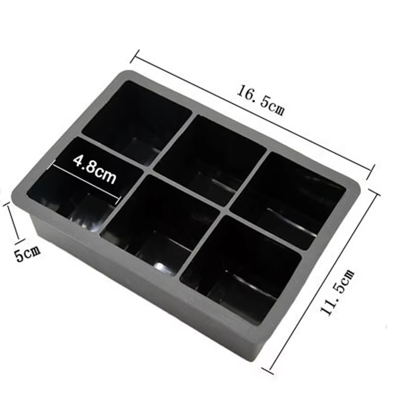 BPA Free Flexible 6-Grid Silicone Ice Cube Tray Eco-Friendly DIY Square Ice Molds for Whisky Cocktails Freezer Safe Removable