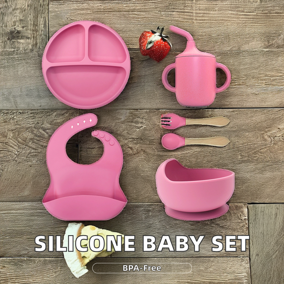 BPA Free Non-Spill Silicone Baby Tableware Set Print Pattern Weaning Bowl and Plate for 0-12 Months Baby Feeding Essential Set
