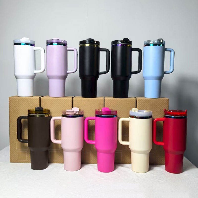 BPA-Free Outdoor Travel 30oz 40oz Insulated Cup Vacuum Flask Stainless Steel Tumbler with Handle Straw Lid