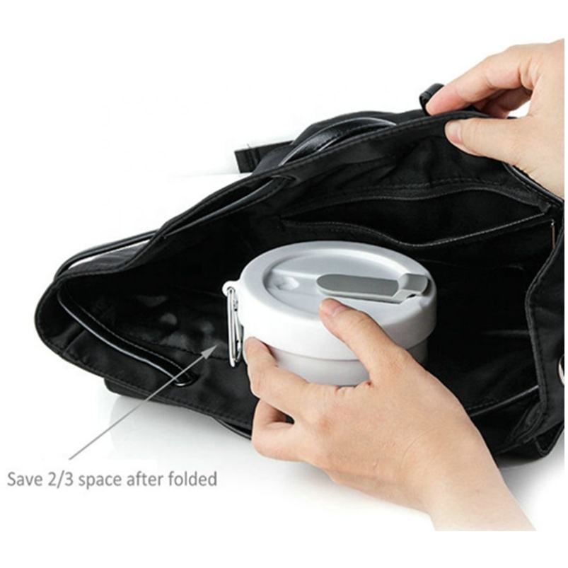 BPA Free Silicone Folding Coffee Mug Reusable Food Grade Collapsible Travel Cup with PP Material Gift with Lid and Handgrip