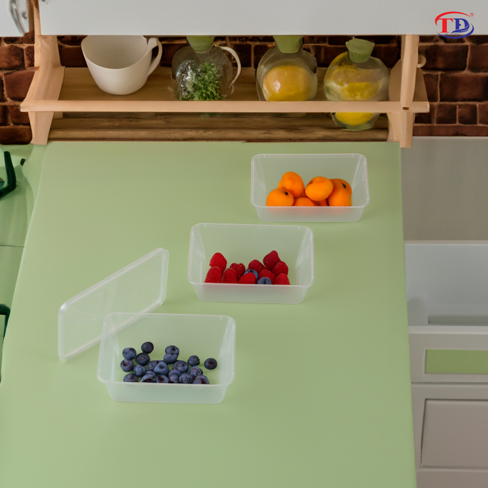 BPA free New Product Ideas 2025 Transparent Injection Rectangle Disposable 550/650/750ml Plastic Food Container with Lids