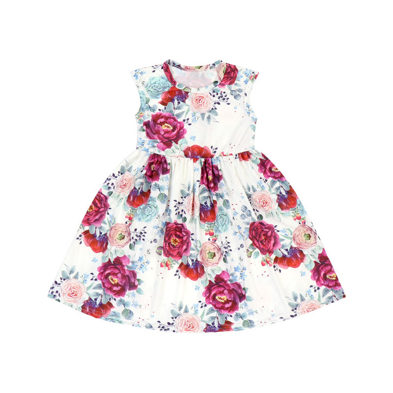 BQA-188 Cute Toddler Stripe Floral Printed Dress Summer Dress Baby Girl Dresses