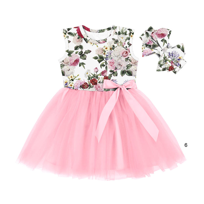 BQA-275 Light Blue Top Floral Casual Dresses Summer Sleeveless Flower Party Tutu Dresses for Little Girls