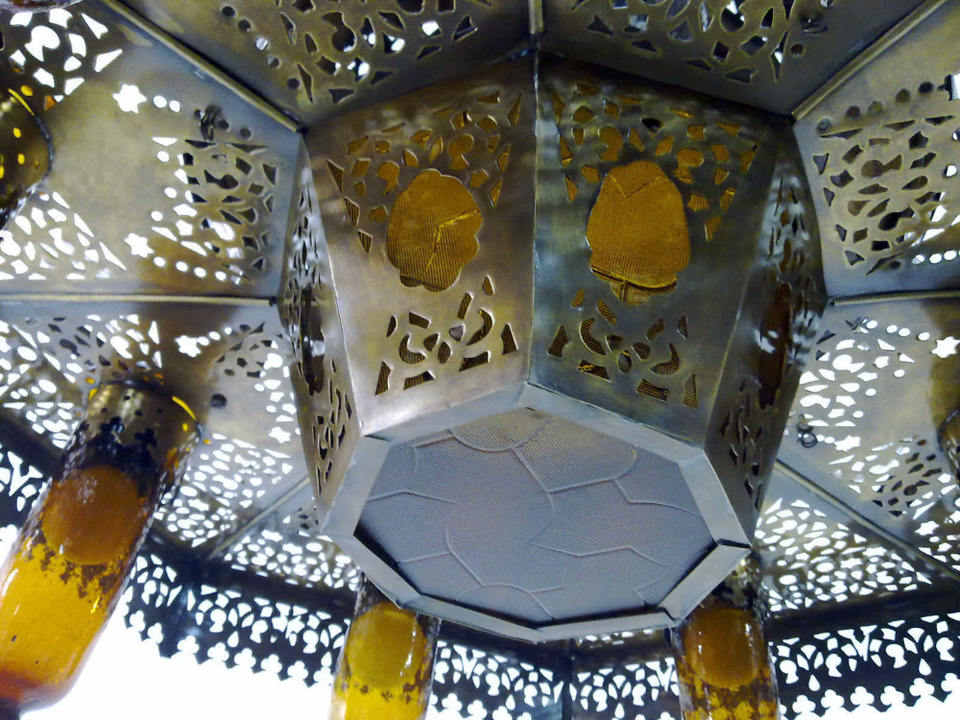 BR383 Moroccan Style Large Brass Chandelier Hand-Blown AMBER GLASS INSERTS Decorative Wall Lamp Pendant