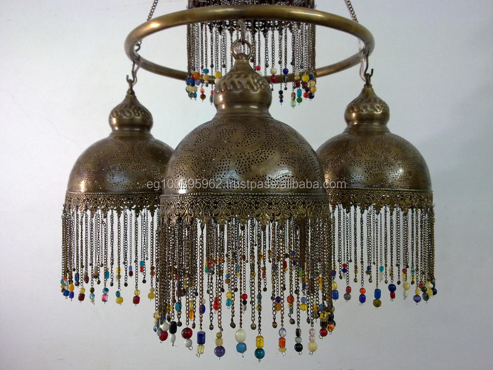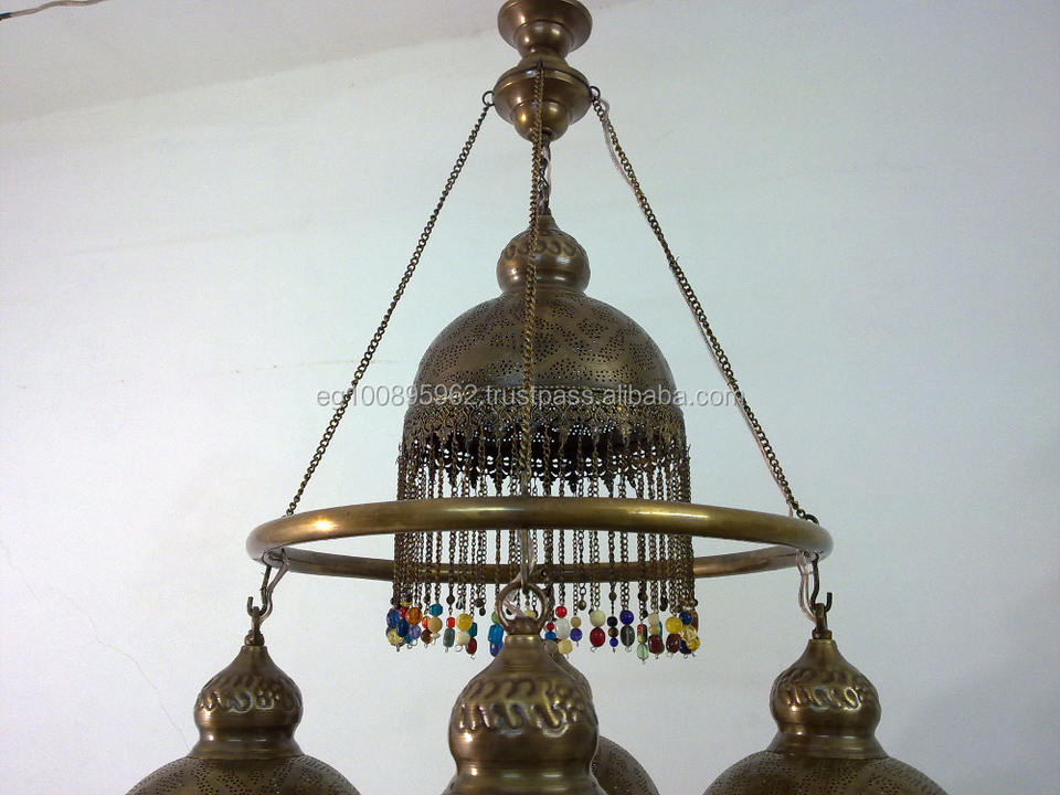 BR385 Antique Gold Moroccan Mosaic Beaded Chandelier Decorative Style with Energy Saving 5 Down Lights Brass Ring Wall Lamp