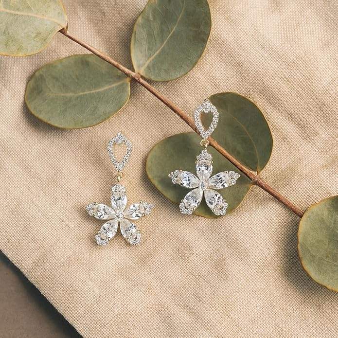 BRIA by SAAR India 925 Silver Luxury Floral Crystal Drop Earrings Women Designer-Inspired Statement Jewelry Pave Stones Ideal