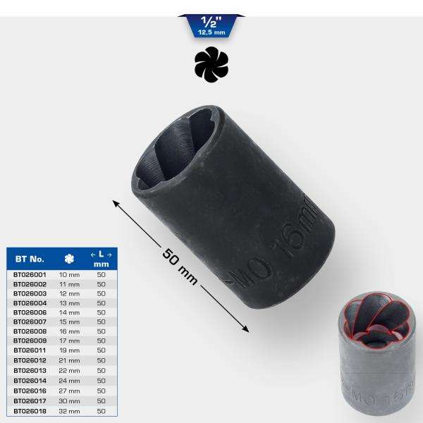 BRILLIANT TOOLS - BT026009 1/2'' spiral-profile socket - EAN 4042146870051 IMPACT SOCKETS AND ACCESSORIES