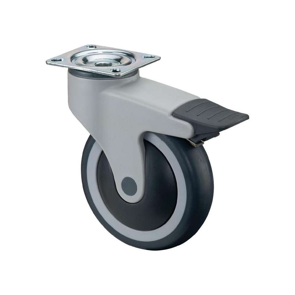 BS Rollen Plastic lockable castor wheel dm 125 mm load capacity 100 kg with screw-on plate ball bearings rubber grey