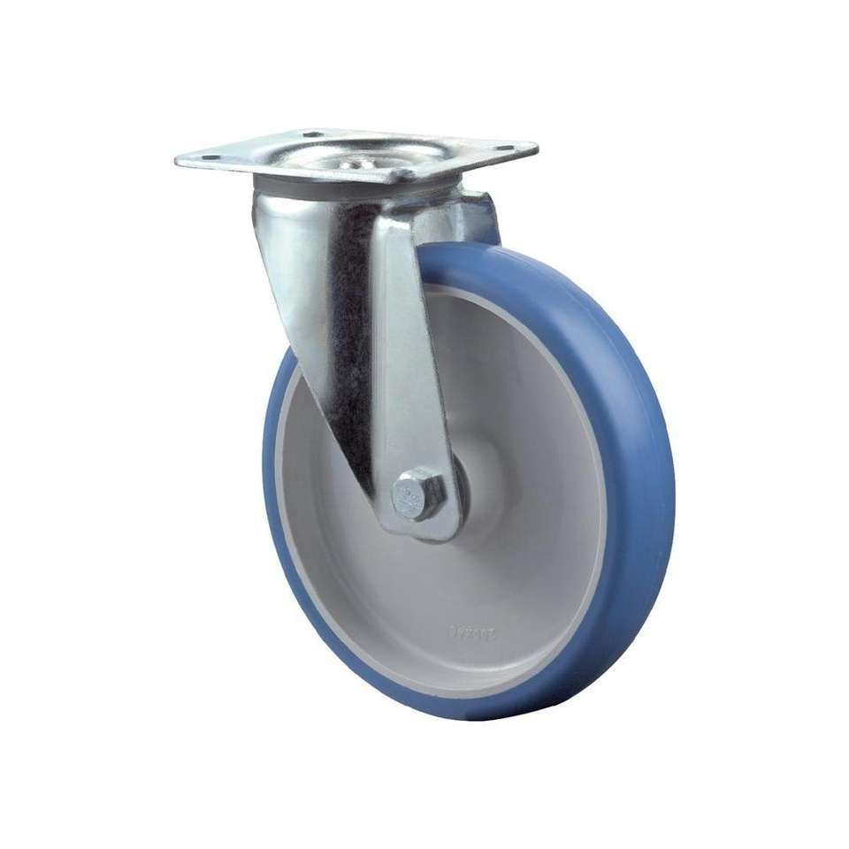 BS Rollen Swivel castor wheel dm 125 mm load cap. 150 kg polyurethane panel L104xW80 mm blue castor