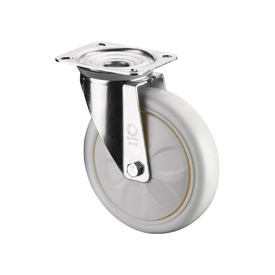 BS Rollen Swivel castor wheel dm 200 mm load cap. 300 kg plastic panel L135xW110 mm white castor