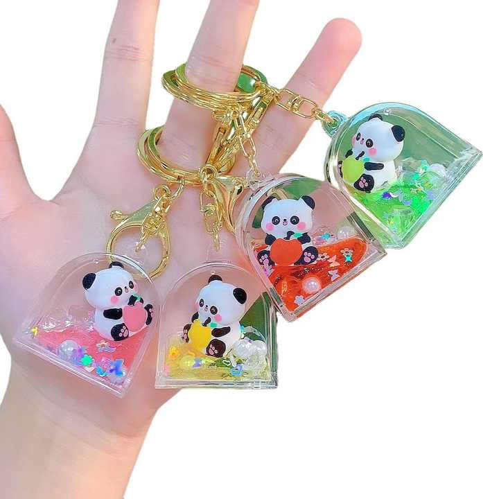 BSBH New Design Cute Panda Liquid Keychain Oil Sand Bottle Acrylic Lanyard Keychains Fashion Creative Bag Promotional Gift