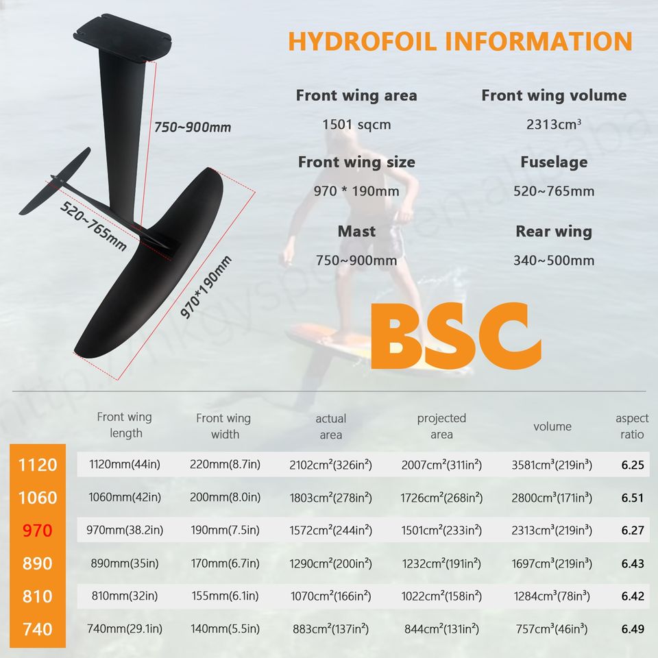 BSC970 Hydrofoil Carbon Fiber Paddle Surfing Board New Design for Outdoor Water Sports Wind Hydrofoil Pumping Board