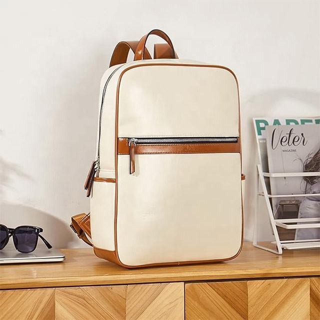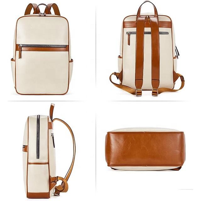 BSCI Custom Laptop Backpack Leather 15.6 Inch Students Laptop Backpack Unisex Sport Travel Bag Bag Beige