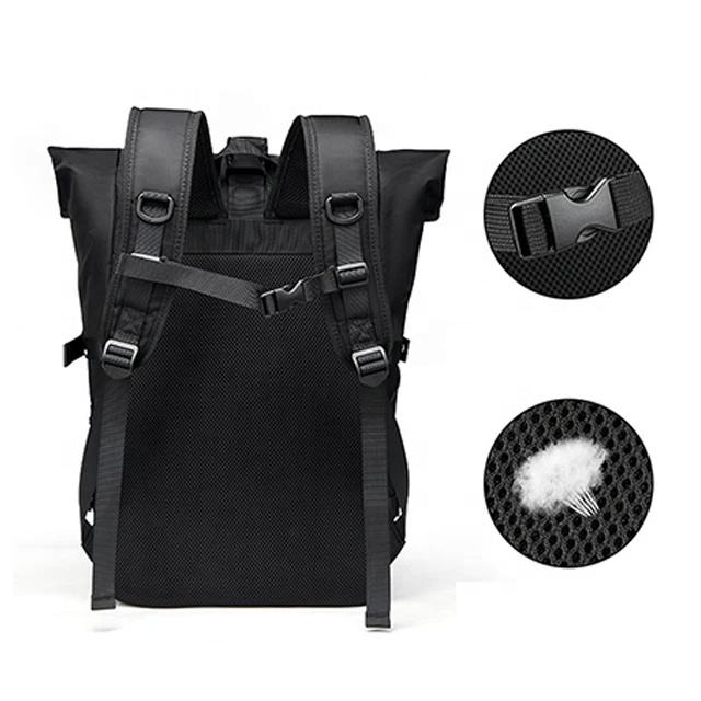 BSCI Custom Luxury Unisex Roll Top Backpack Waterproof Black Nylon Laptop Bag for Office & Leisure Use