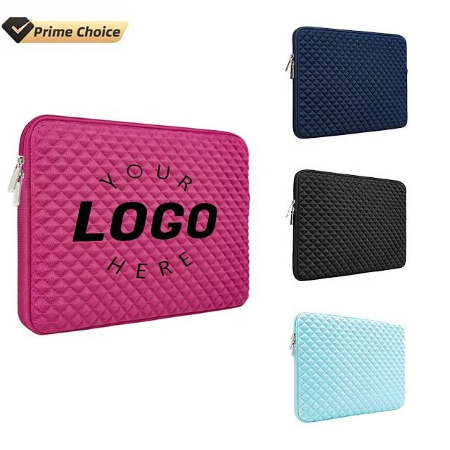 BSCI Custom Neoprene Laptop Sleeve Diamond Foam Shock Resistant Carrying Bag with Zipper Cover Fluffy Lining for Office Travel