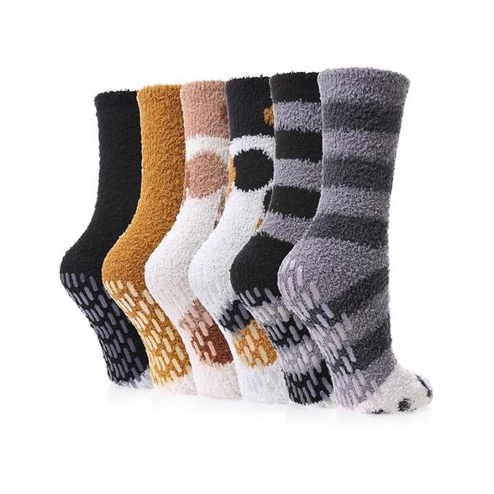 BSCI Custom Non-Slip Women's Winter Slipper Socks Soft Fluffy Hospital Grips Logo Bottom Youth High Quality Cozy Fuzzy Socks