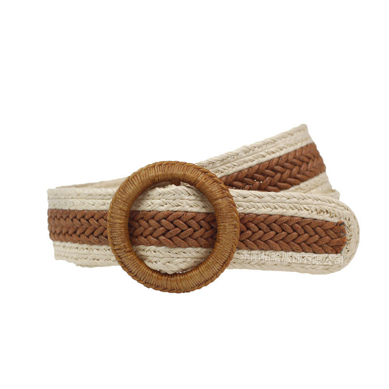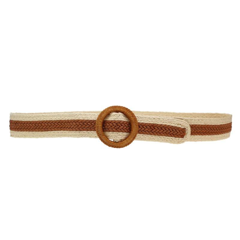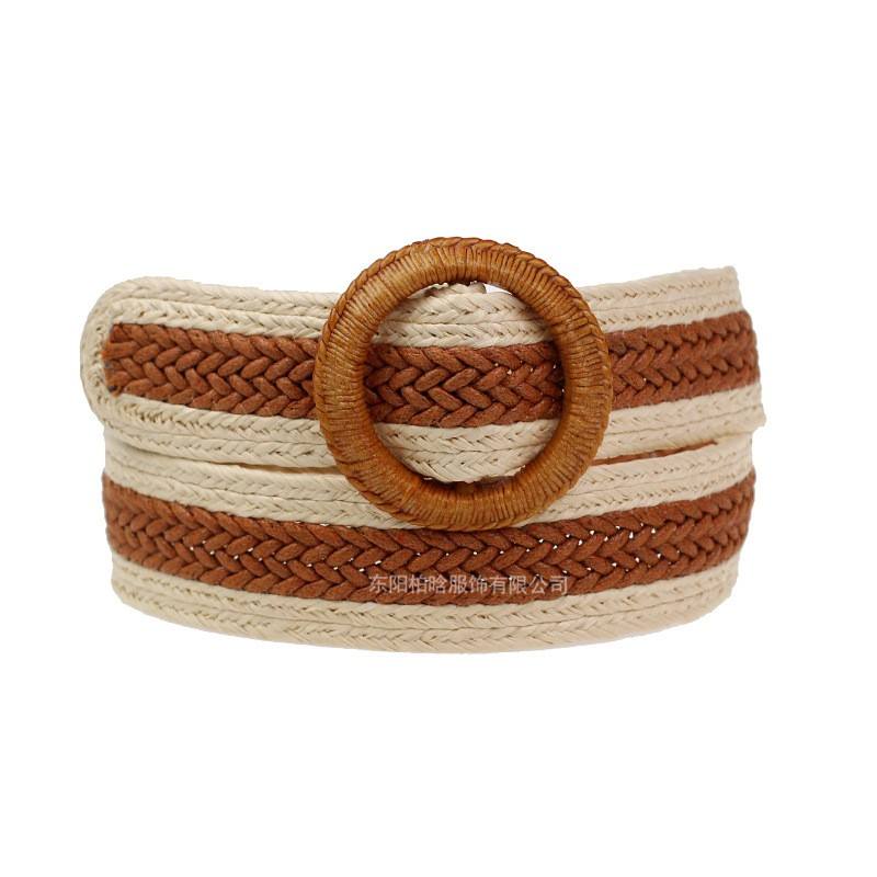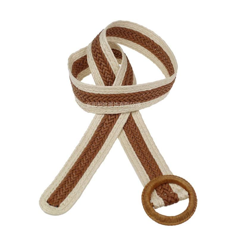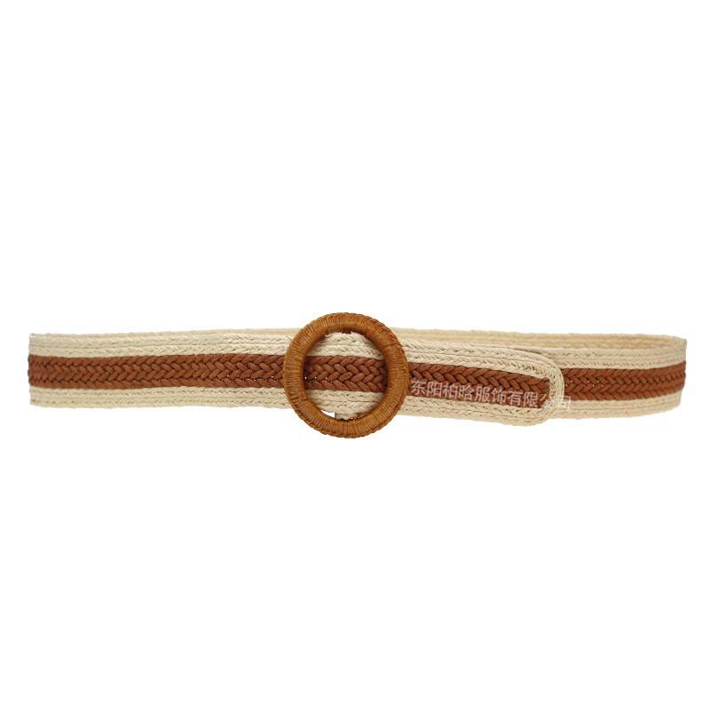 BSCI European American Fashion Elastic Woven Belt for Women Stylish Round Buckle with Korean Style 1PC Fabric Belt for Dresses