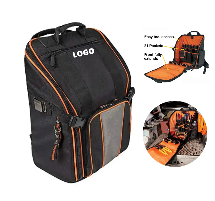 BSCI Factory Custom Professional Large Capacity Durable Heavy Duty Engineer Electrician Tool Organizer Backpack Bags