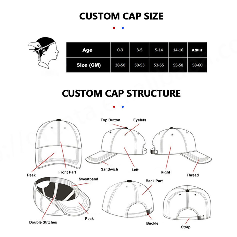 Logo position:brim/visor, front panel, Left panel, Right Panel, back curved part