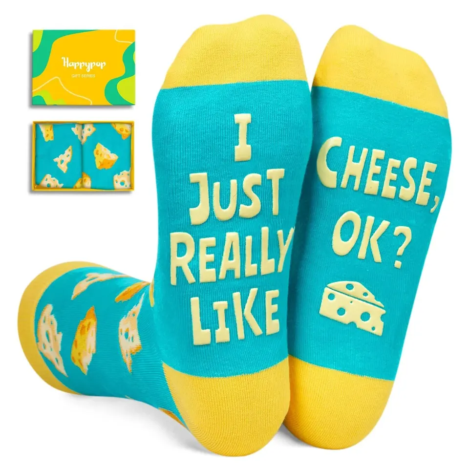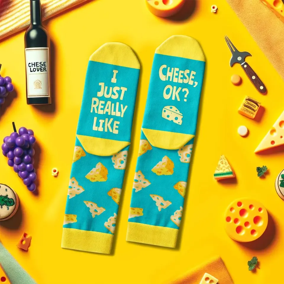 BSCI Novelty Crew Socks for Men Women Funny Text Sayings Bottom Cartoon Cheese Custom Logo Wholesale Items For Sale In Bulk
