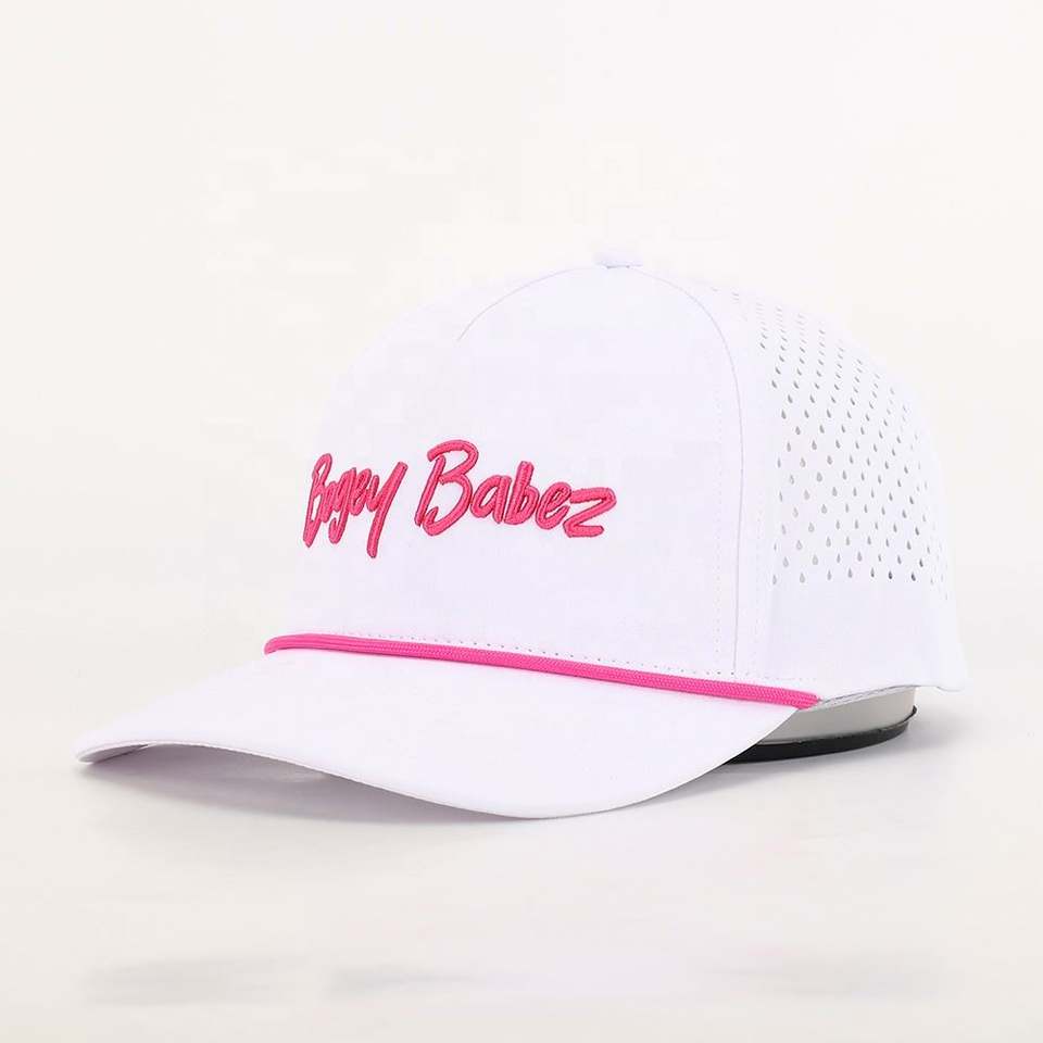 BSCI Wholesale Oem 5 Panel Sport Hat Embroidery Logo High Quality Polyester Rope Baseball Cap Custom Laser Cut Hole Golf Gorras