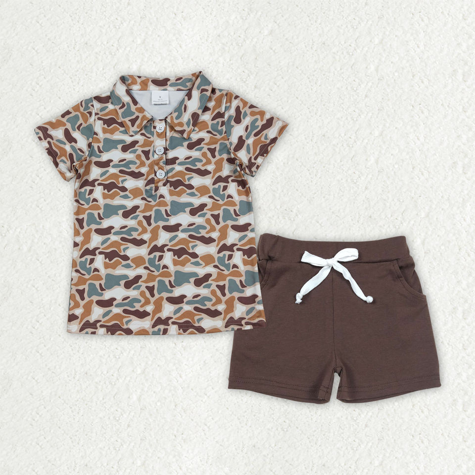 BSSO1781 rts Boutique Little Boy Toddler brown CAMO cross Clothing Set summer Outfits Wholesale Kids Clothing