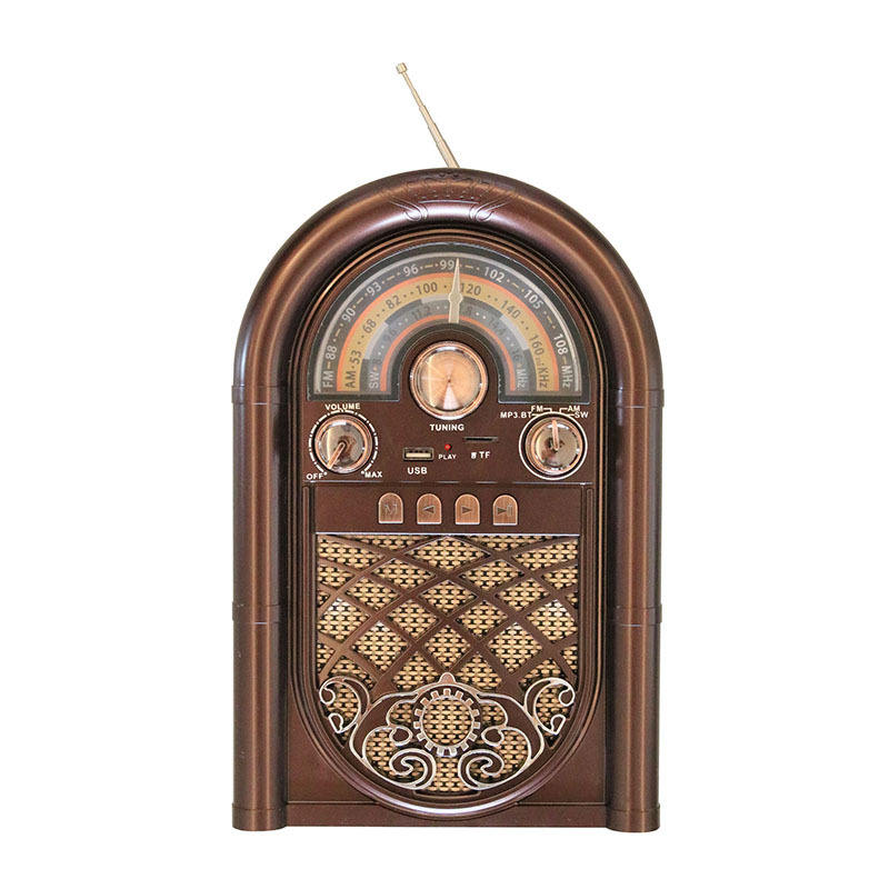 BT Vintage Style Plastic Portable Radio Multi-Band Woodgrain Receiver FM/AM/SW Retro Wireless Speaker Supports MP3 Playback TF