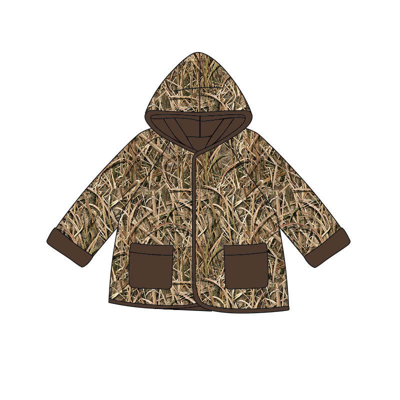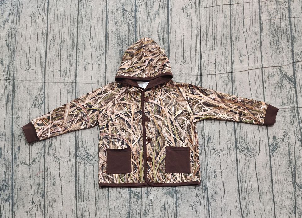 BT1443 RTS brow grass print Top for Baby Boy long Sleeve Infant pocket hoodie Clothe