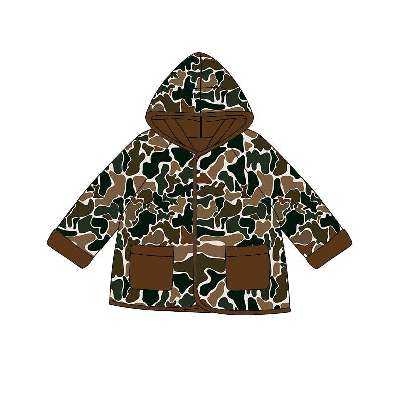 BT1444 Custom Blue leopard print Top for Baby Boy long Sleeve Infant pocket hoodie Clothe