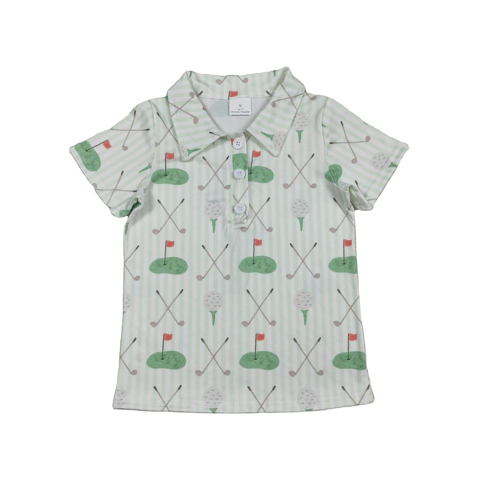 BT1584 RTS green stripe golf pattern print Top for Baby Boy long Sleeve Infant T-shirt summer button Clothe